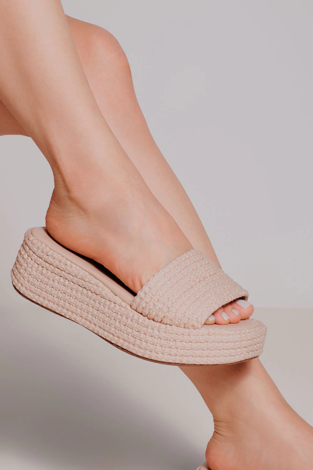 - Plataforma trançada em textura natural: sofisticação que remete ao artesanal, elevando seu look com autenticidade.