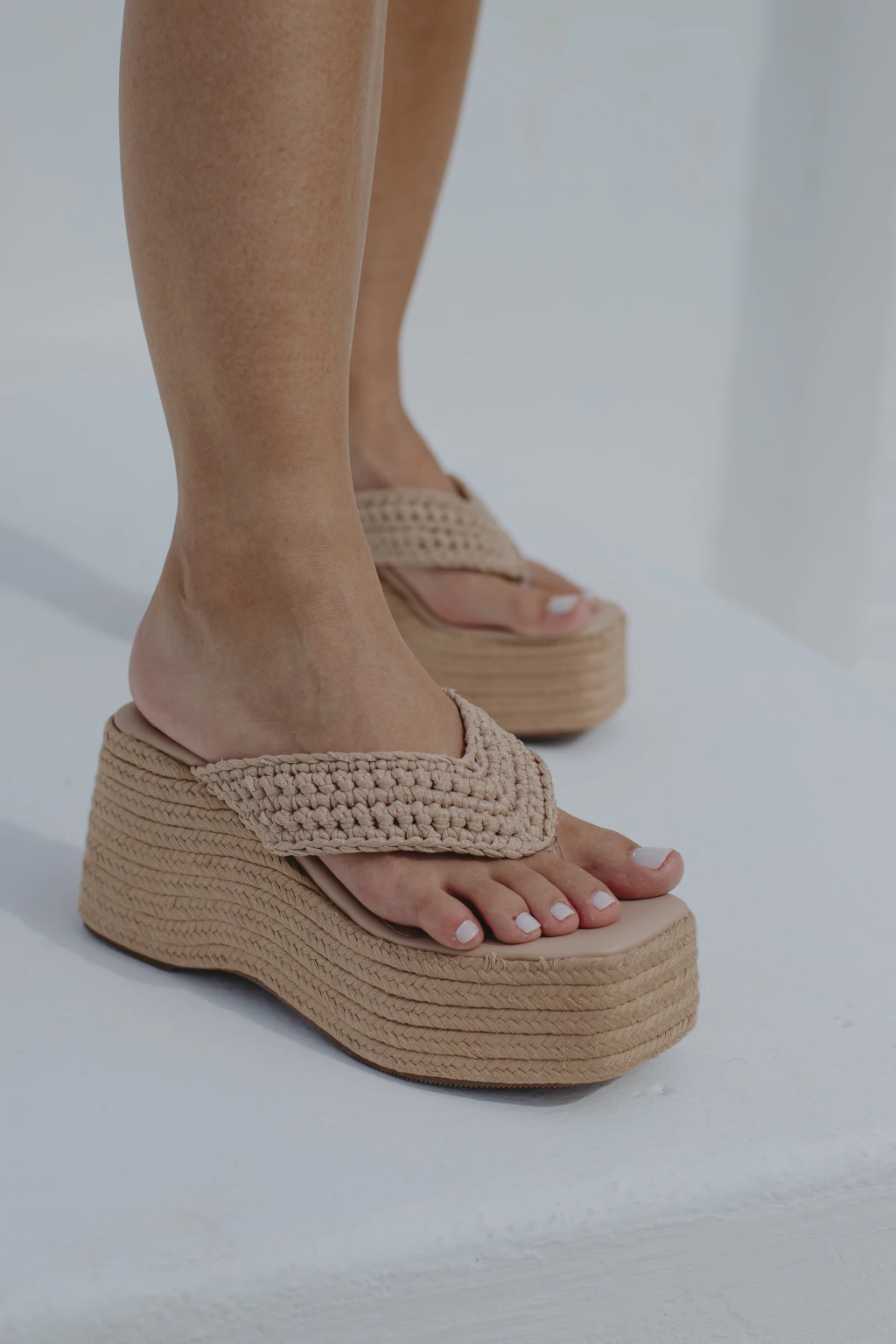 Desperte seu estilo com essas plataformas. Uma sandália que combina delicadeza e conforto em cada detalhe. Com um design único, esta plataforma apresenta uma frente confeccionada em corda de algodão, trazendo um toque artesanal e sofisticado ao seu visual.